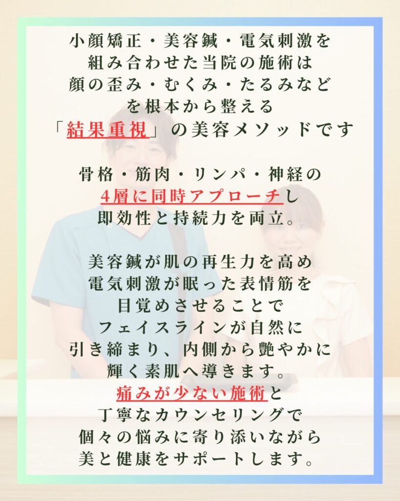 美容鍼をはじめ、当院では月に一度の施術で確かな改善と持続的な結果を追求。